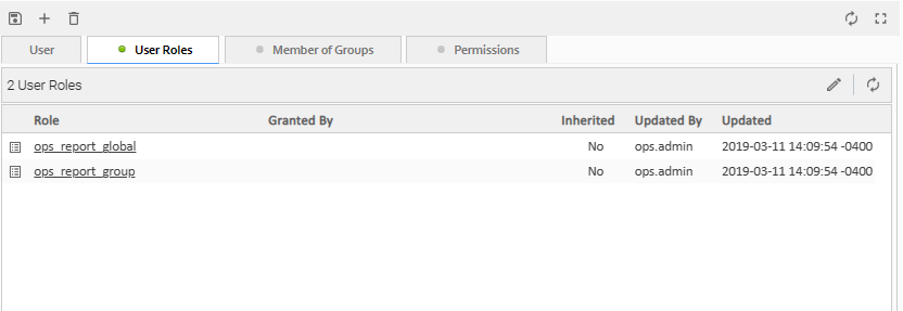 For a User, click the User Roles tab. A list of Roles assigned to the User displays.