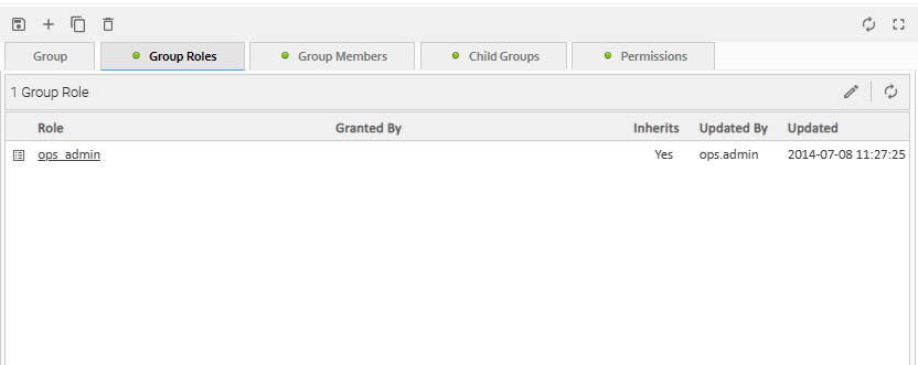 For a Group, click the Group Roles tab. A list of Roles assigned to the Group displays.