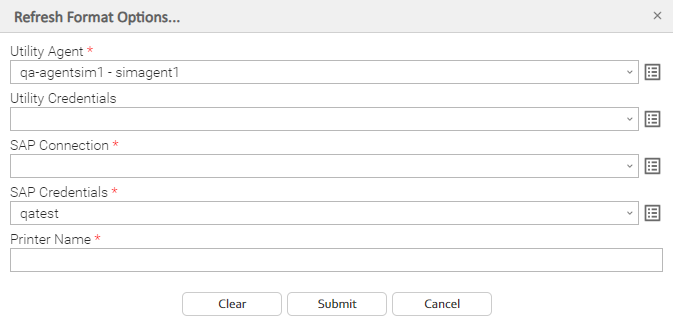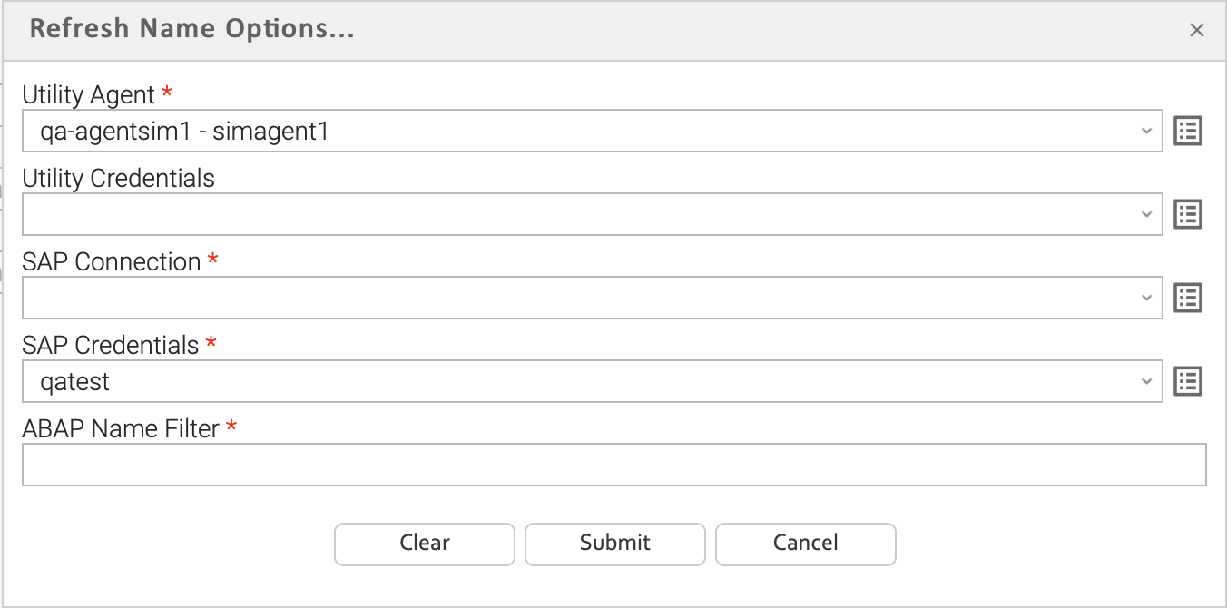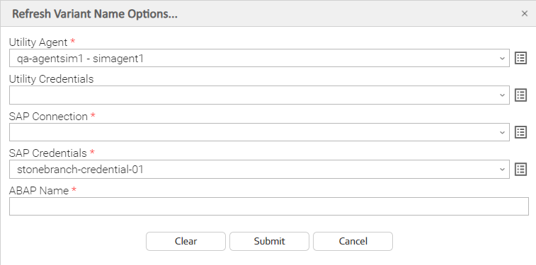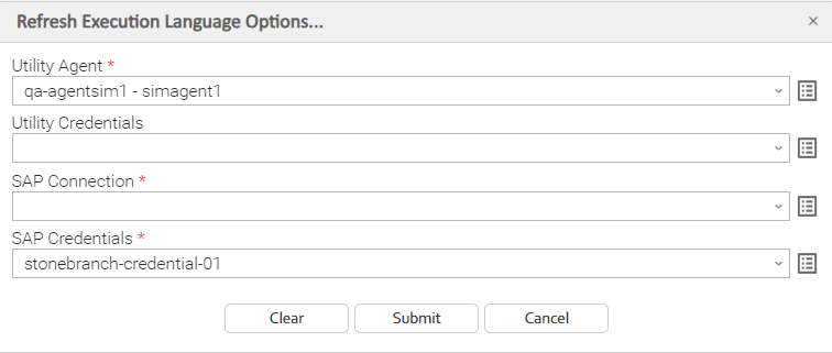 SAP Credentials | Login credentials that the Controller will use to access the SAP system. The credentials are stored in the Universal Controller credentials table; see Credentials. |