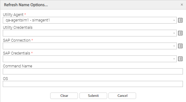 Utility Agent | Name of the Agent resource that identifies the machine where the operation will run. If you do not specify a Utility Agent, you must specify a Utility Agent Cluster or Utility Cluster Broadcast. |