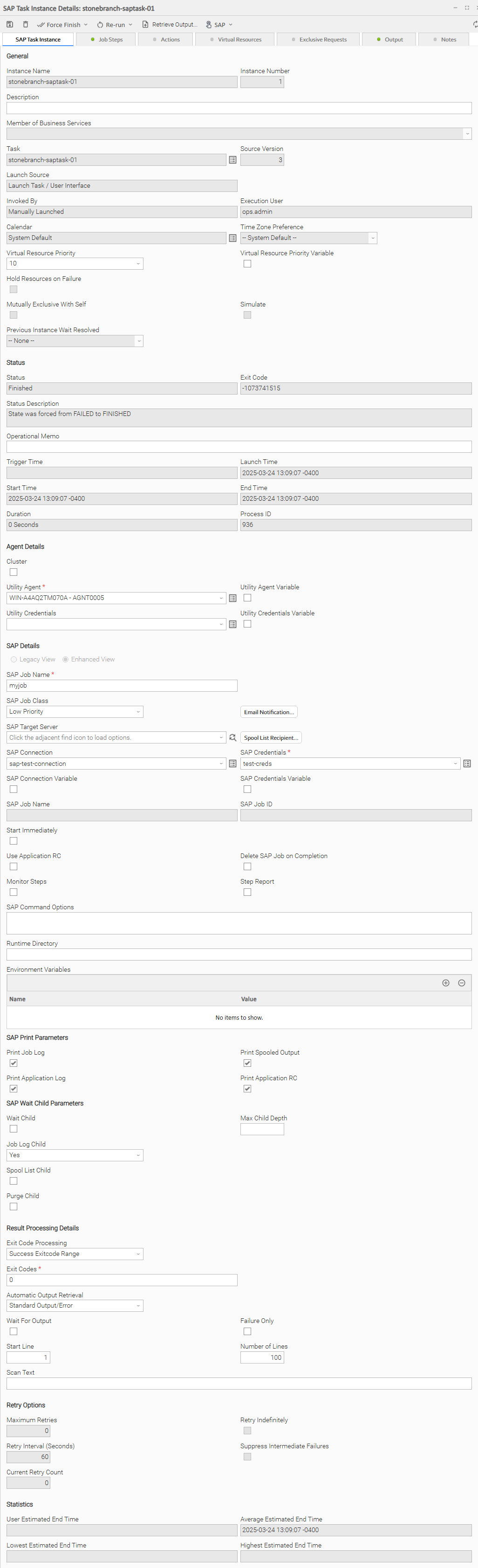 This section contains information about execution statistics of a Job Step. These fields are only available for an SAP Task Instance.