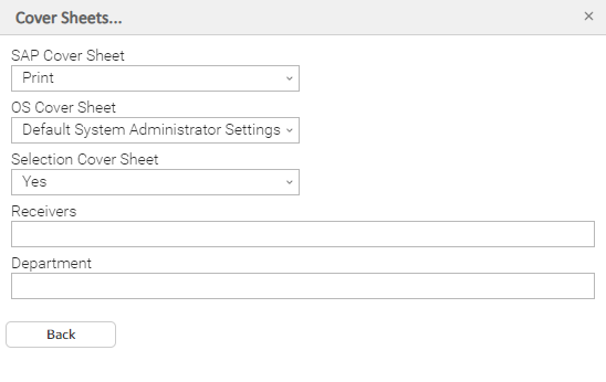 SAP Cover Sheet | Specifies whether a cover page containing details about the print request - such as recipient, department, and format - is to be sent with the with the spool request. |