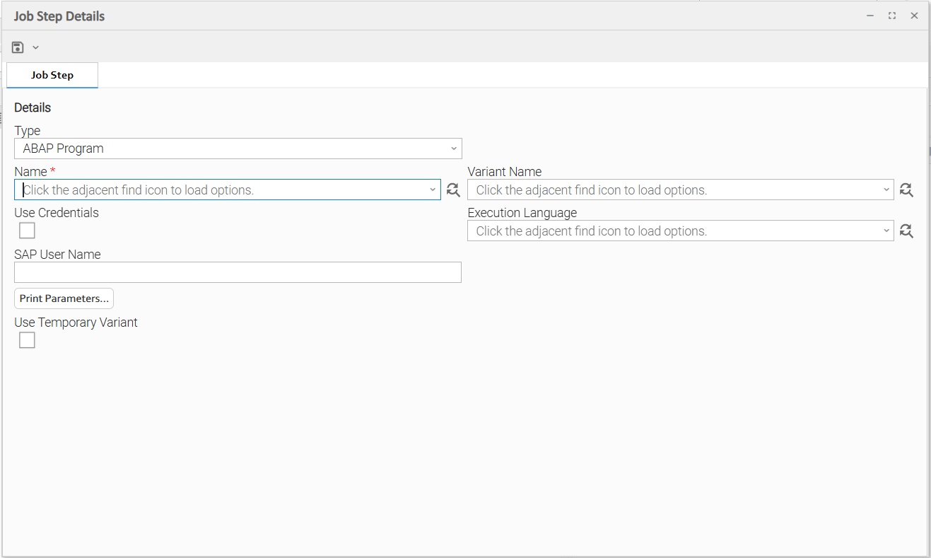 Some Job Step Details fields allow you to populate their drop-down lists with options retrieved from the SAP system: