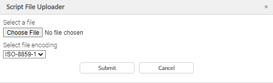 Click the Upload Script button. The Script File Uploader pop-up displays.