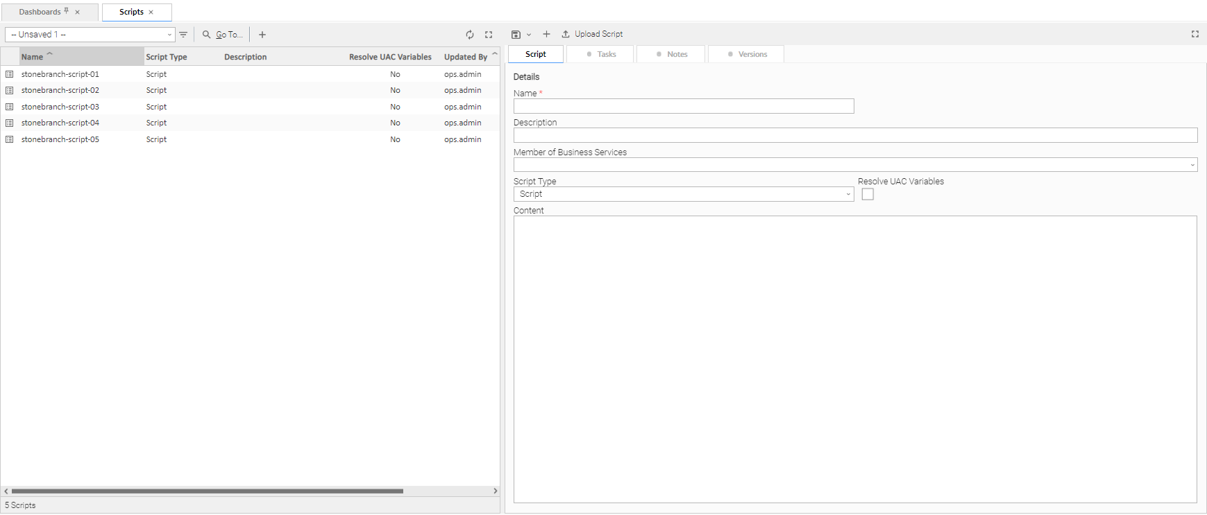 Scripts allows you to store scripts in the Universal Controller database.