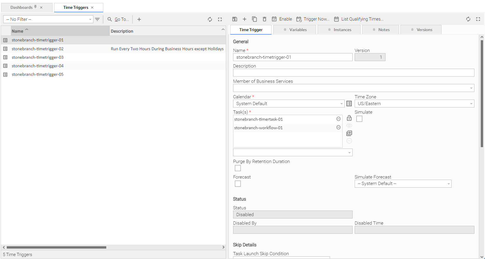Task Launch Skip Condition is not applicable when using the Trigger Now... command and will be ignored. |