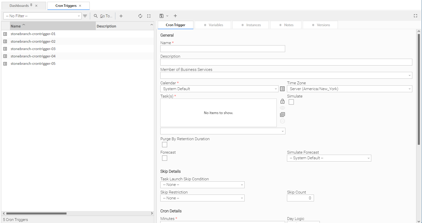 When a trigger is satisfied, Universal Controller launches the tasks specified in the trigger. Each trigger can have an unlimited number of tasks associated with it. All of the specified tasks are run each time the trigger is satisfied. If you want to specify dependencies such as "run Task B only if Task A fails," create a Workflow, which is a series of inter-connected tasks.