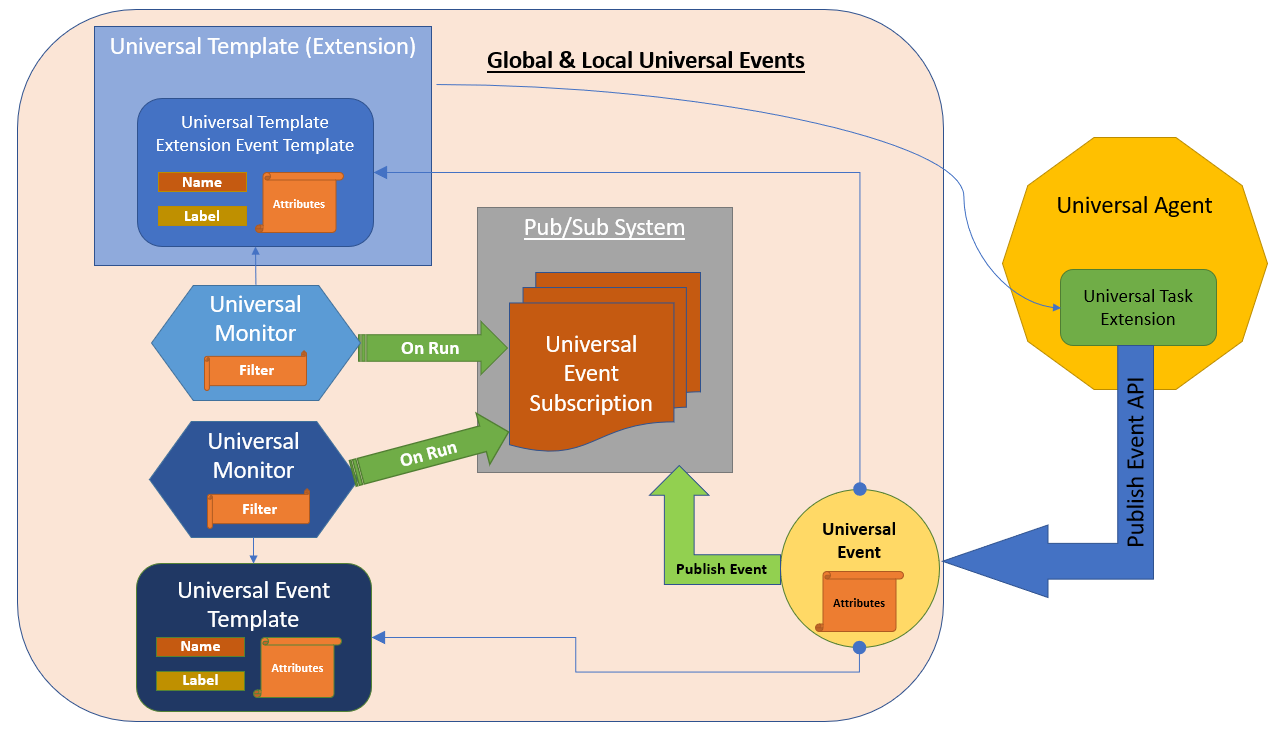 Additionally, Extension-based Universal Templates can publish global Universal Events.