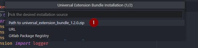 Click Yes and select Path to the universal_extension_bundle_1.2.0.zip option in the dropdown: