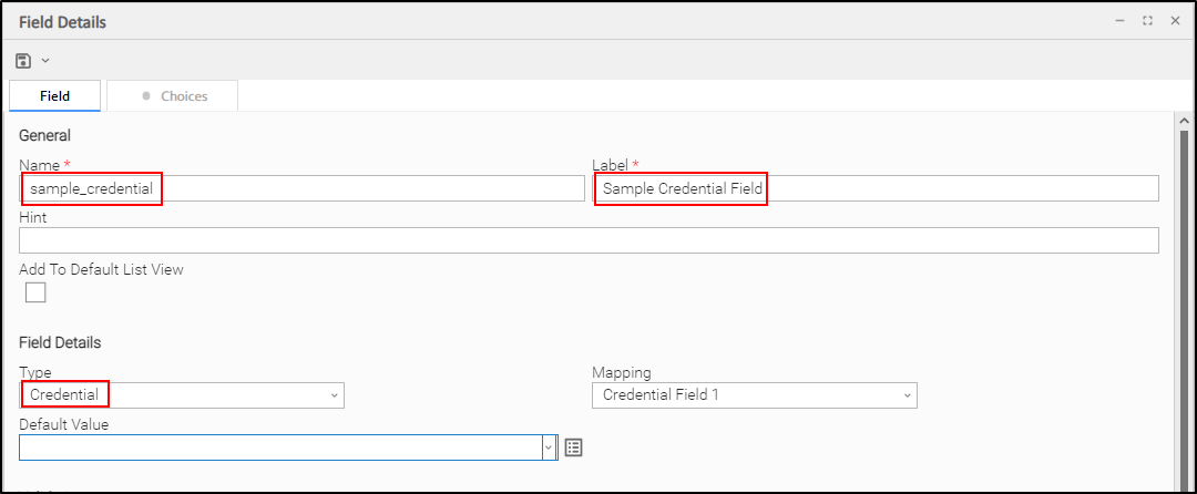 2 - Adding a new credential field and showing the updated code completion menu