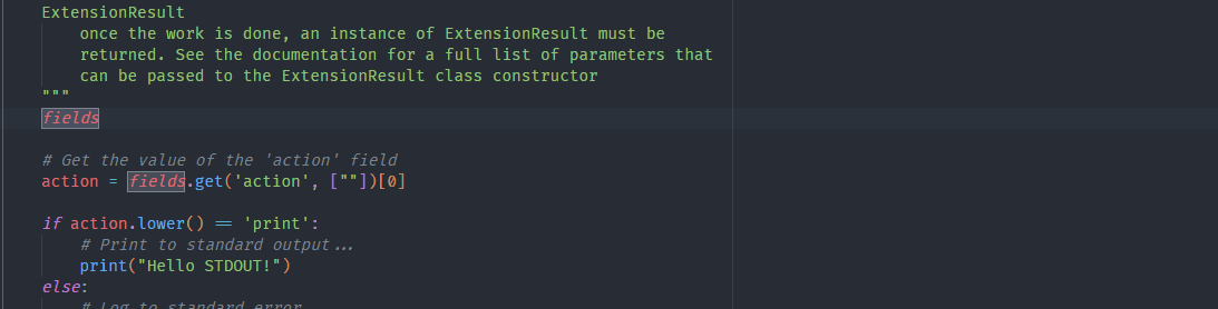 As can be seen in the figure above, typing fields[ presents a list of available field names that is filtered down further as additional characters are typed.