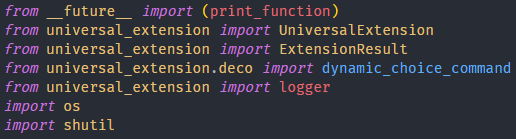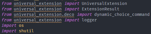 Aside from allowing the debugger to accurately launch/debug Universal Extension tasks, the bundle zip also adds autocompletion/suggestion functionality to extension.py. For example, without the bundle installed, VSCode will complain that it cannot find the universal_extension module: