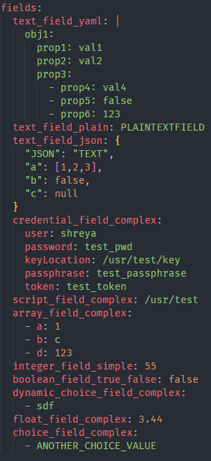 For extension_start, the fields object is required if there is at least 1 field defined. For a dynamic choice field under dynamic_choice_commands, the fields object is required if it has at least 1 dependent field.