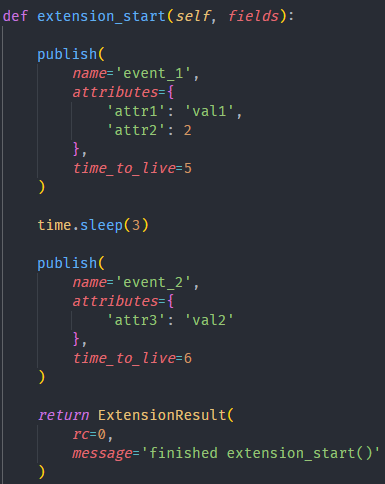 Even though publishing events is supported, it isn’t all that useful since the concept of triggers and monitor does not apply to the plugin. They can be useful to verify the event is successfully configured/setup.