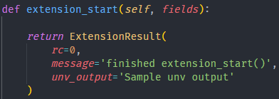 UIP (EXTENSION) will show the output of ExtensionResult returned by extension_start() or a dynamic choice command. All possible parameters of ExtensionResult will be rendered. For instance, the following