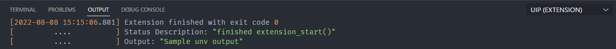 UIP (CONSOLE) will contain miscellaneous output that is still useful, but doesn’t fit in STDOUT/STDERR/EXTENSION. As shown in the previous section, it contains the output of Output Only Fields and Events.