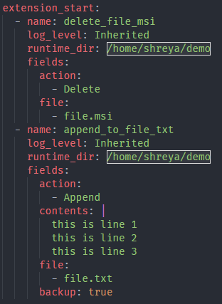extension_start has some additional properties besides name, log_level, and fields that are useful. It has: