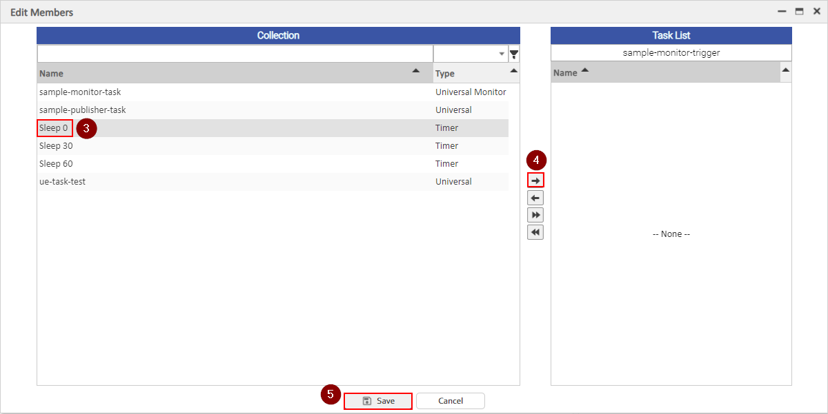 The trigger above will launch the Sleep 0 task when the sample-monitor-task's specified criteria is matched.
