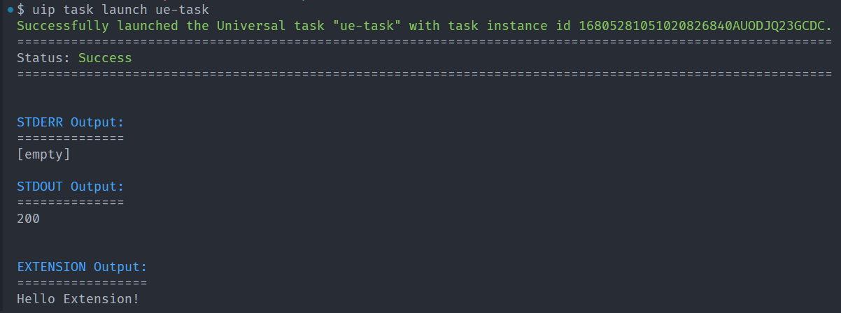 Run the task, either from the Controller or using the VSCode plugin. Once run, in STDOUT, you should see status code 200 printed: