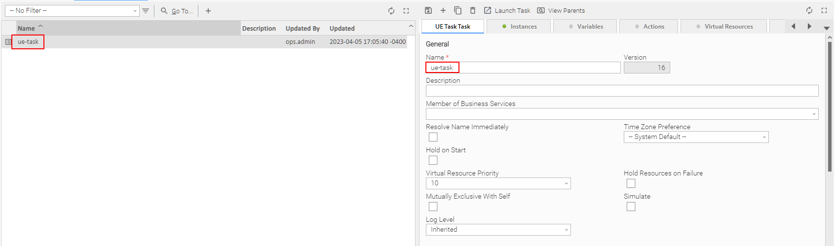 Now that the Extension has been pushed out to the Controller, go ahead and create a task called ue-task (or whatever you want to name it) on the Controller side.