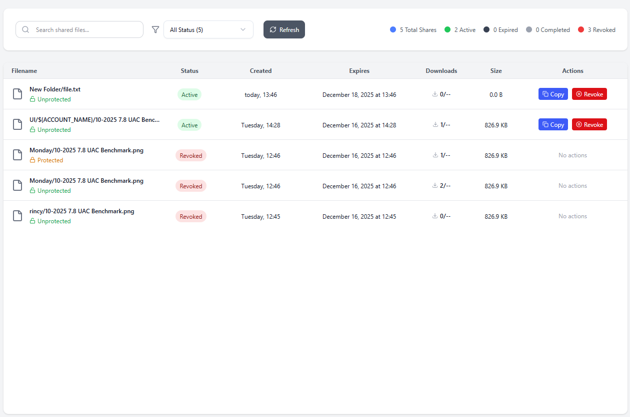 | Revoked | The share link has been manually invalidated, so the file cannot be downloaded. |